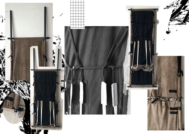 Desenvolvimento de peças multifuncionais para um futuro especulativo de desordem ambiental. O arranjo compacto em apenas uma bolsa, solicita o engajamento do usuário para montar: dois tipos de maca, uma cadeira, uma rede, dois tipos de cabana e uma asa de Rogallo.